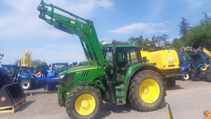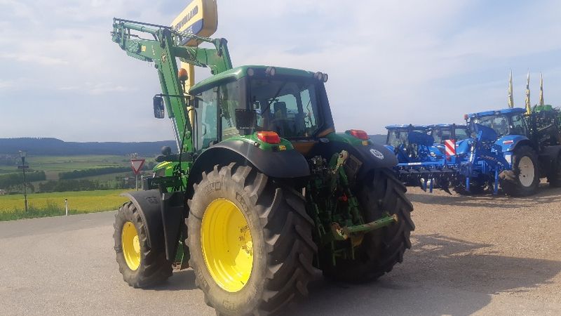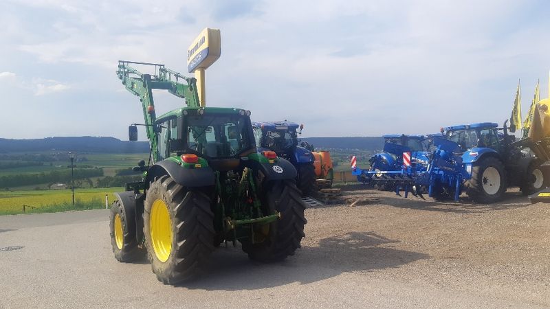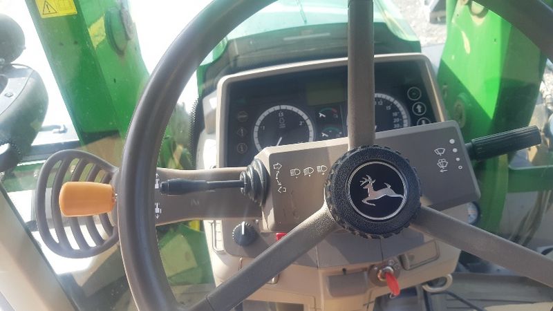 PowerShuttle, Lastschaltung, 5 DW Steuergeräte mit Joystick, Zapfwelle 540/540E/1000, Klima, EHR, Druckluft 1+2L, ISOBUS, GPS Antenne Star Fire, gefederte Vorderachse, Fronthydraulik, Frontlader John Deere H380, Bereifung; 540/65R28 - 650/65R38