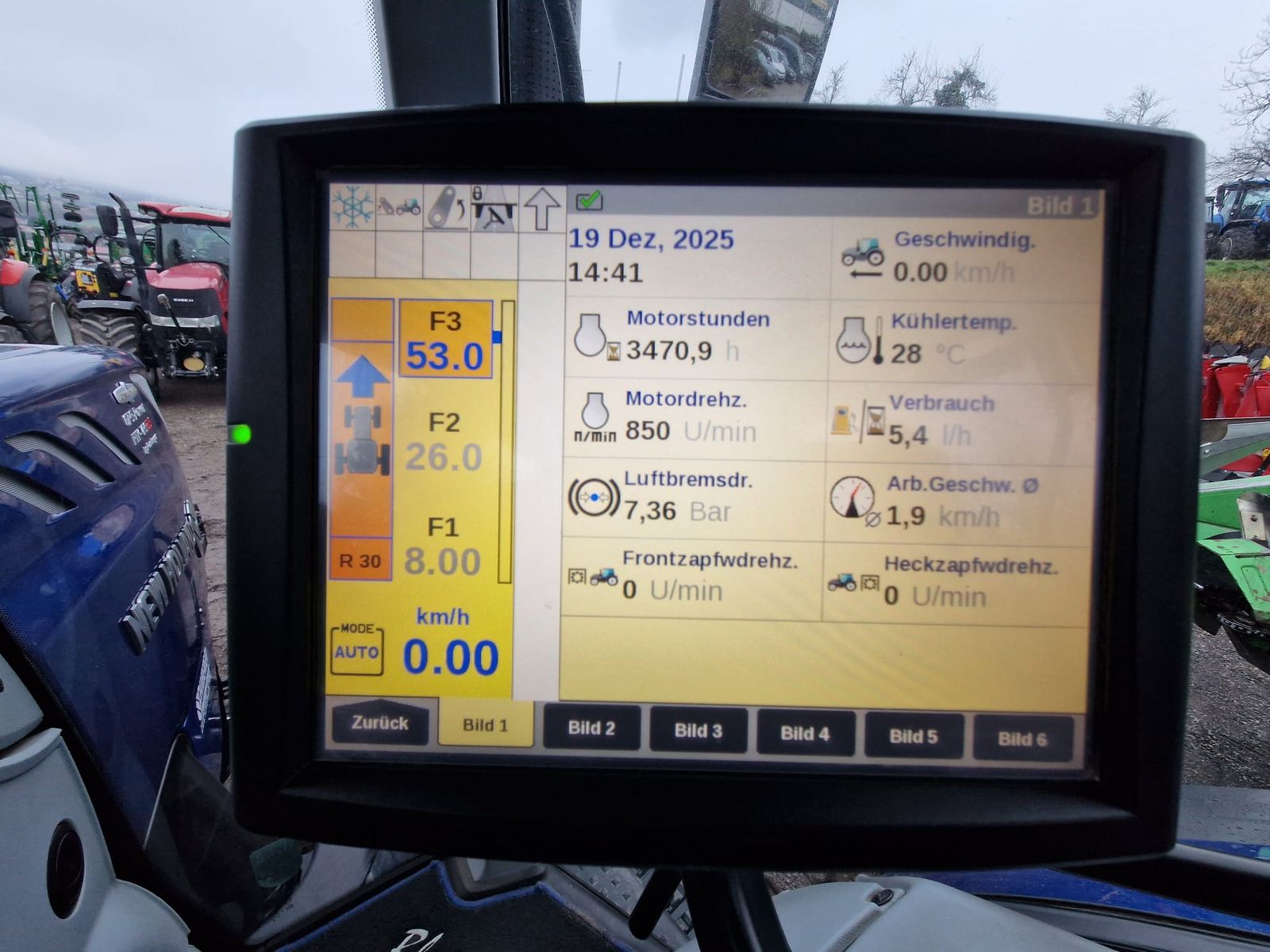 Kraftstofftank ohne Tankschutz, Batteriehauptschalter elektrisch, 200 A Lichtmaschine, Auto Command Getriebe 50 km/h ECO Kotflügelbedienung beidseitig EHR, Zapfwelle und 3. Hecksteuergerät) Zapfwelle 540/540E/1000/1000E, elektronische Drehzahlvorwahl ABS Anhängersteckdose 12V Hochleistungsbremsscheiben Elektronische Parkbremse Vorbereitung Spurführungssystem + Variable Lenkübersetzung Custom Steer Gefederte Vorderachse mit Bremse Steckachse 98" High-Flow Hydraulikpumpe 170 l/min 4 Hecksteuergeräte elektronisch Hydraulischer Umschaltventilblock (S/W mit kleinen Kupplungen) Joystick auf Bedienarmlehne Power Beyond Anschlussplatte 2 Zwischenachssteuergeräte elektronisch Hydraulischer Oberlenker bei Heckhubwerk mit 110 mm Zylindern & Kat 2/3 Schellkupplern Automatische Unterlenkerstabilisatoren Fronthydraulik & Frontzapfwelle, 2 Leitungen nach vorne für Zwischenachssteuergeräte & elektrische Steckdosen Automatische Anhängerkupplung schnell höhenverstellbar, Bolzen 38 mm 2-Leiter Druckluftanlage ITBS Intelligentes Anhängerbremssystem Klimaautomatik DYNAMIC COMFORT Kabinenausstattung: DYNAMIC COMFORT Luftfedersitz mit DDS-Niederferquenzfederung, Beifahrersitz mit Lederbezug, Lederlenkrad, Fussmatte Kabinenfederung Kabine mit Türe rechts und links DeLuxe Radio mit Bluetooth 20 Arbeitsscheinwerfer (16 LED 31200 lm, 4 Halogen in Motorhaube) Obenliegende Fahrscheinwerfer Kabine ohne TopView Freisichtdachfenster Rundumleuchte beidseitig Blue Power Lackierung Radarsensor Teleskopspiegel elektrisch verstellbar und beheizbar mit Weitwinkel 710/60R42 Fixfelgen 600/60R30 Fixfelgen Vorderradkotflügel 620 mm mitschwenkend Kotflügelverbreiterung hinten 180 mm ISOBUS Steckdose 11783, ISOBUS Cl. 2 IntelliView IV auf Bedienarmlehne Halterung für Gerätemonitor mit Vorbereitung für IntelliView IV Monitor HTS 2 Vorgewendemanagementsystem & Zusatzsteuergeräte-Management Änderungen und Irrtümer vorbehalten